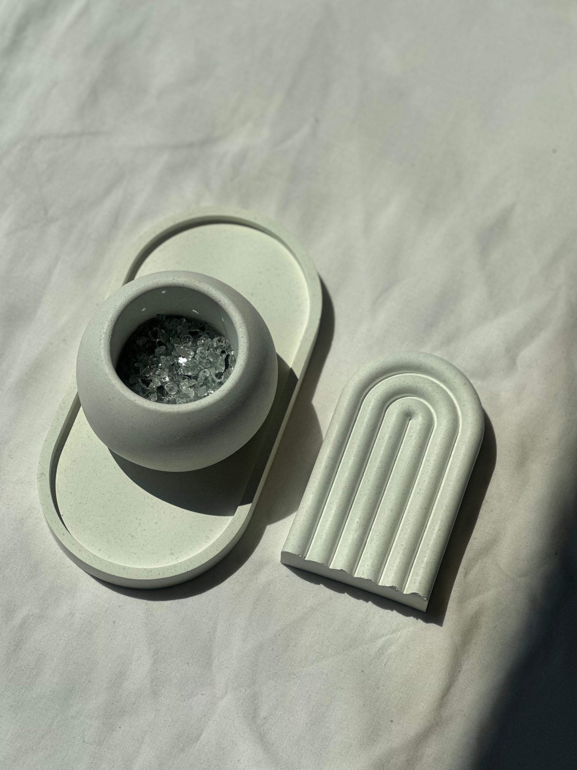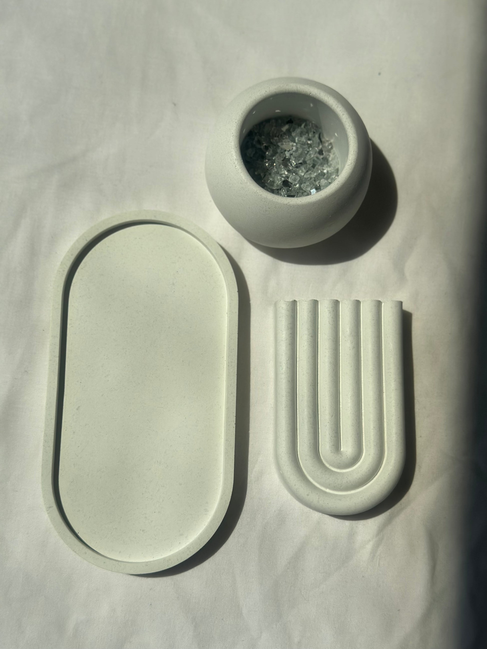 Σετ τριών τεμαχιών σε λευκό χρώμα. Μια σύνθεση κατασκευασμένη για να χαρίσει μια φρέσκια νότα μινιμαλισμού και αρμονίας στον χώρο σου.