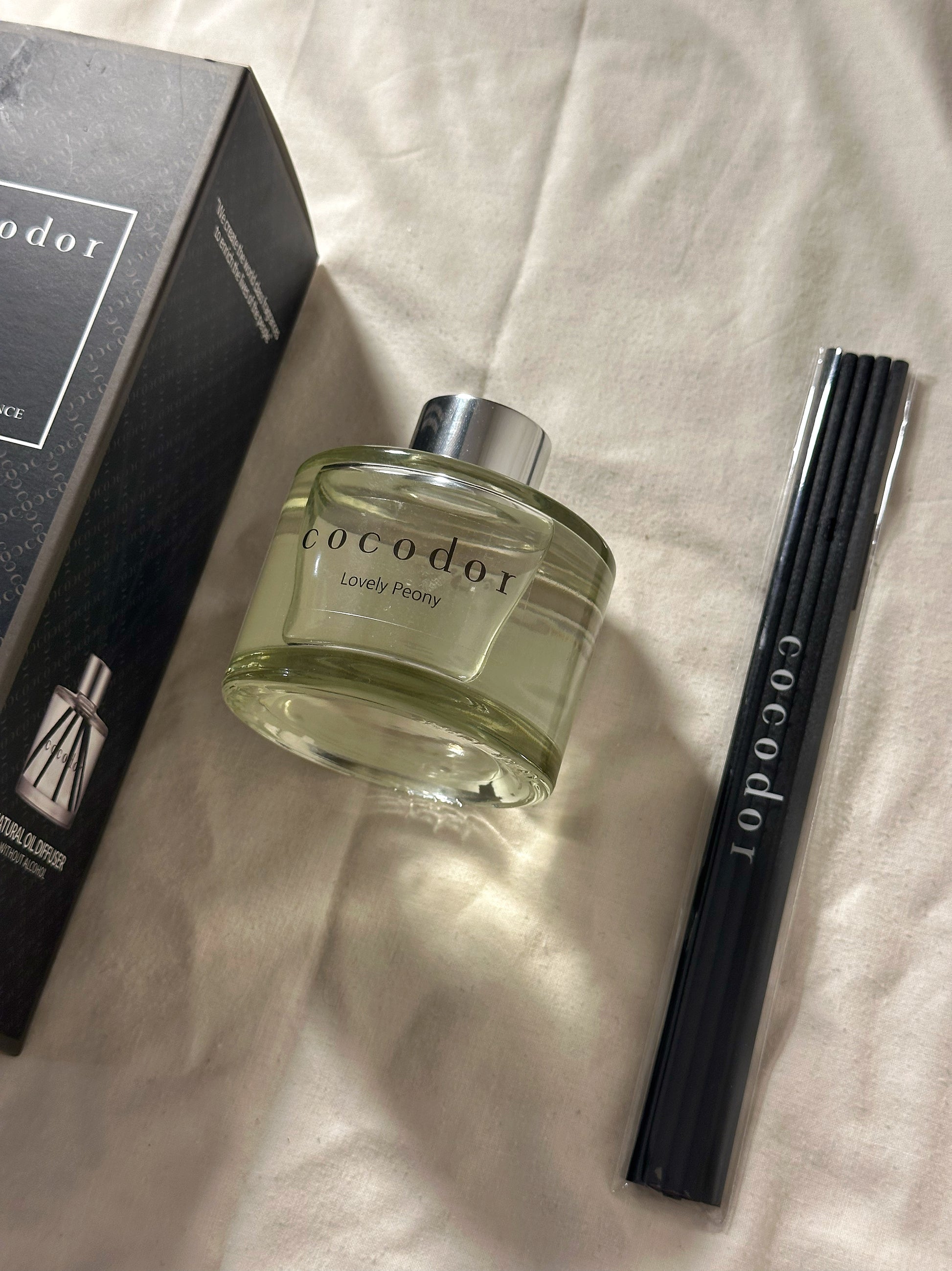 Το reed diffuser της Cocodor, κατασκευασμένο στην Κορέα, απελευθερώνει διακριτικό άρωμα παιώνιας, δημιουργώντας σταθερή και αρμονική αρωματική ροή που ολοκληρώνει ιδανικά το κερί.