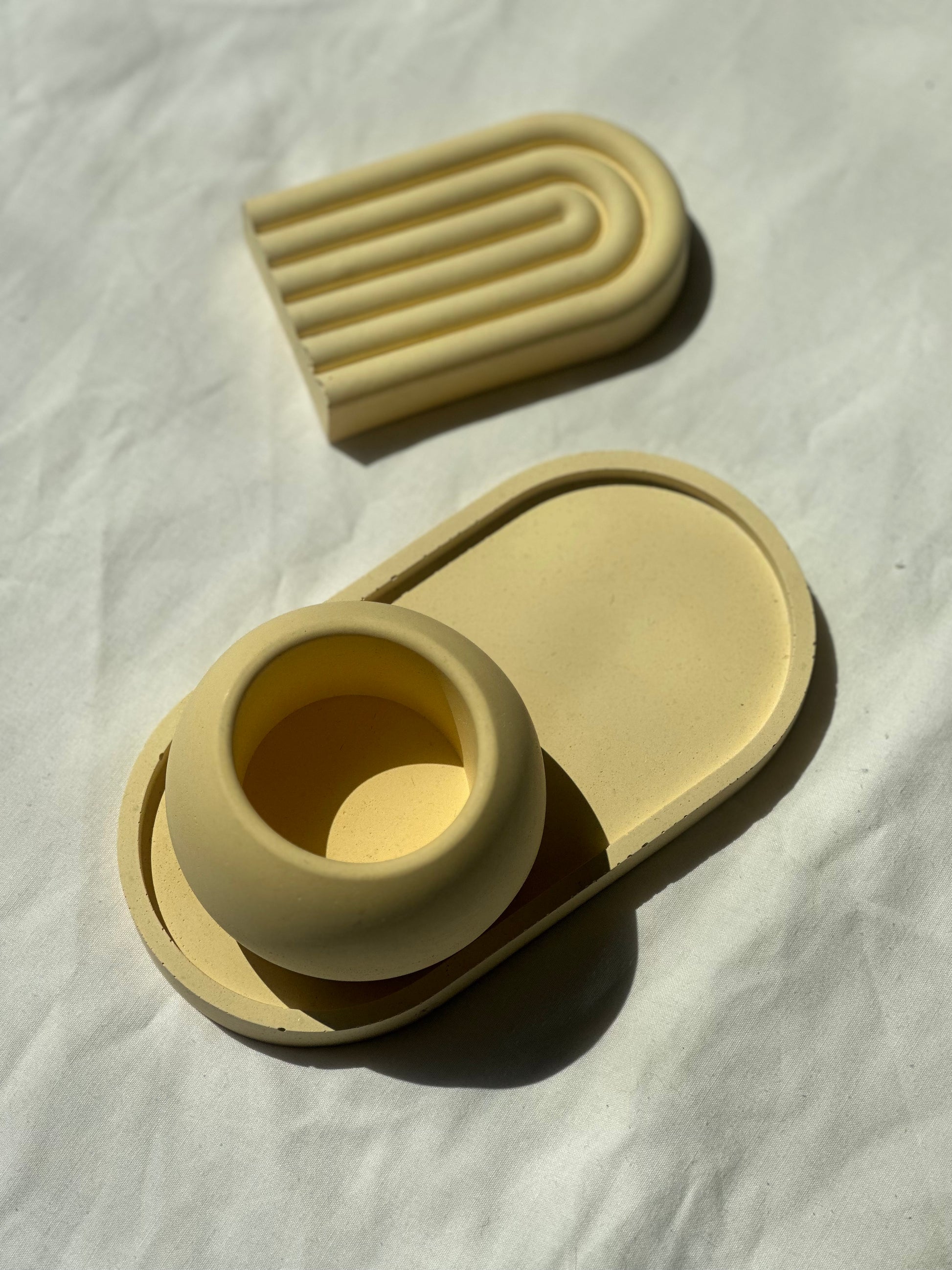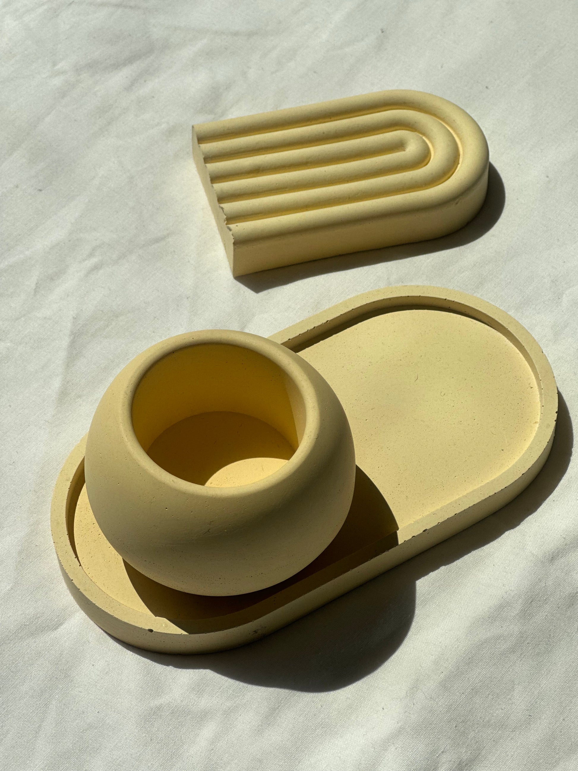 Σετ τριών τεμαχιών σε κίτρινο χρώμα. Μια σύνθεση κατασκευασμένη για να χαρίσει μια φρέσκια νότα μινιμαλισμού και αρμονίας στον χώρο σου.