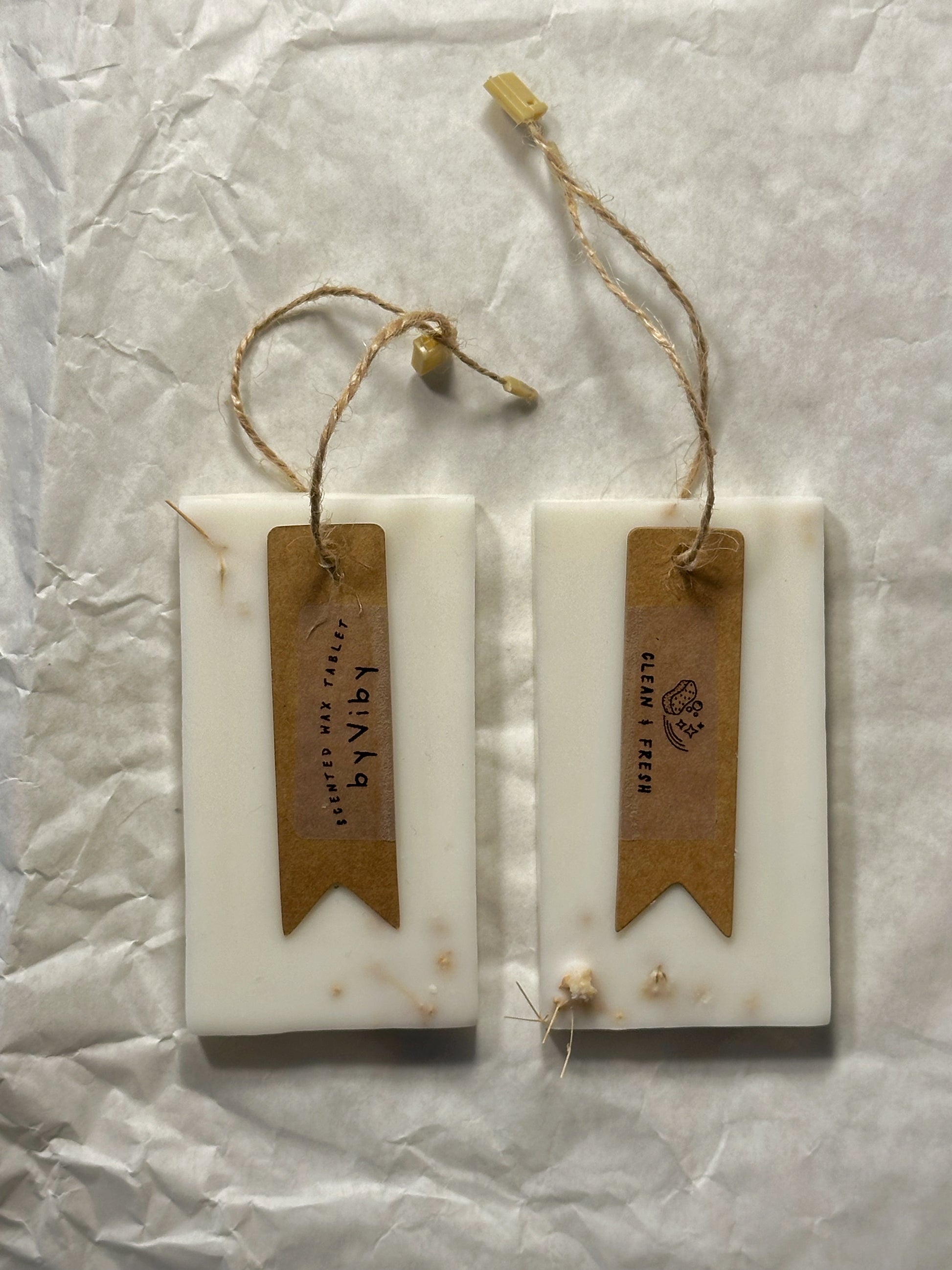 Δώστε στις ντουλάπες σας μια αίσθηση απόλυτης καθαριότητας και φρεσκάδας με τις αρωματικές ταμπλέτες Clean & Fresh. Το σετ περιλαμβάνει δύο χειροποίητες ταμπλέτες από φυτικό κερί ελαιοκράμβης, ιδανικές για να κρεμαστούν στην ντουλάπα ή να τοποθετηθούν σε συρτάρια, βαλίτσες και αποθηκευτικούς χώρους. Το διακριτικό και αναζωογονητικό άρωμα προσφέρει φρεσκάδα που διαρκεί, κρατώντας μακριά τις δυσάρεστες οσμές. Vegan, cruelty-free και φιλικές προς το περιβάλλον.