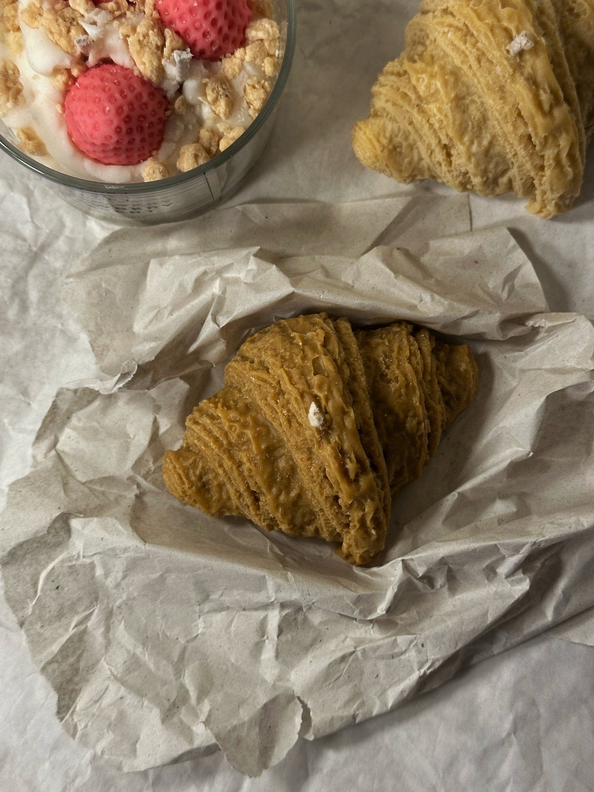 Ζεστό, αφράτο, βουτυρένιο. Αυτό το λαχταριστό κερί σε σχήμα κρουασάν μοσχοβολάει σαν να βγήκε μόλις από τον φούρνο. Η μυρωδιά του φρεσκοψημένου βουτύρου μπλέκεται με απαλή βανίλια και σε ταξιδεύει σε ένα γαλλικό πρωινό. Μια γευστική εμπειρία...χωρίς θερμίδες!