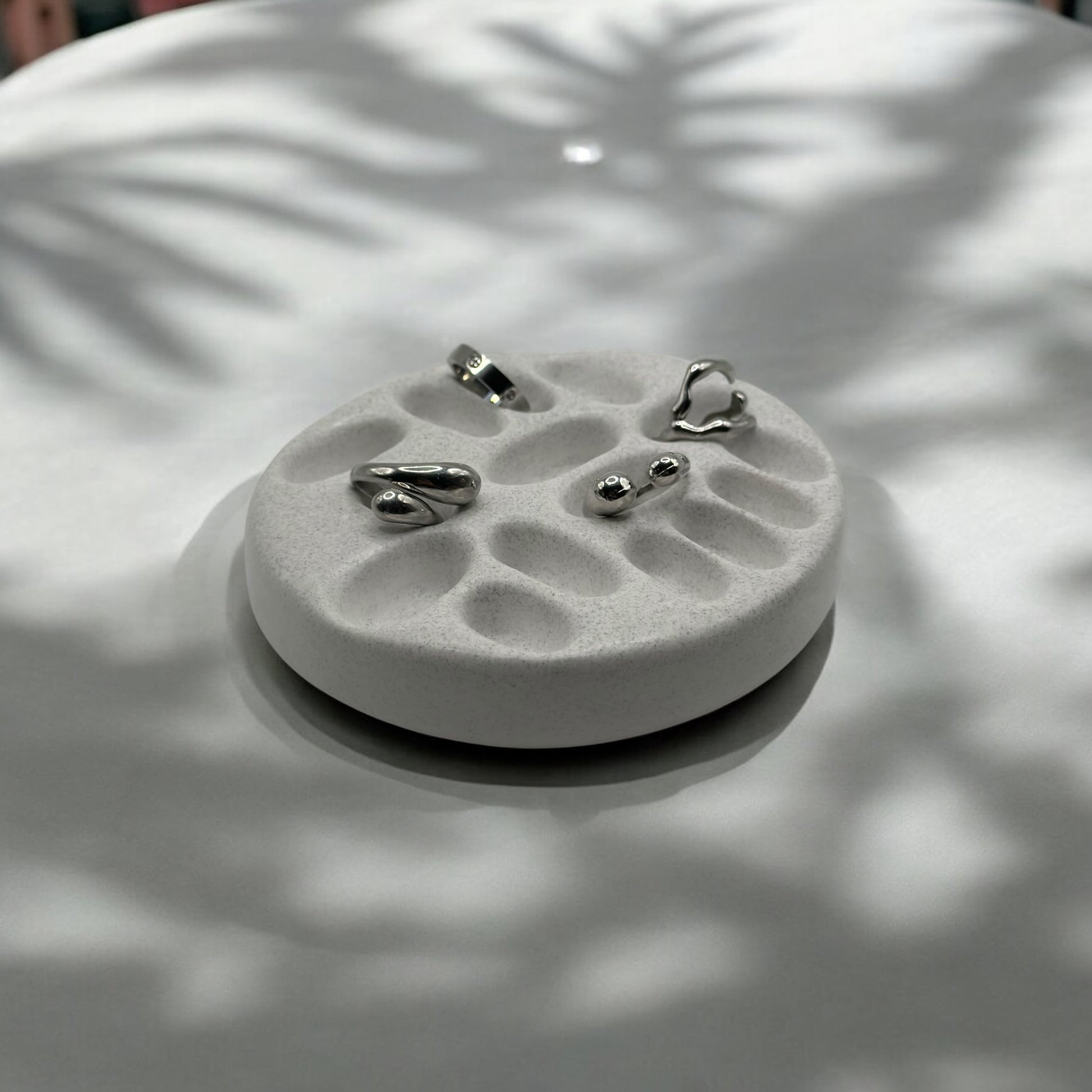 Λευκή χειροποίητη βάση για να αναδείξετε τα αγαπημένα σας δαχτυλίδια! Με εφέ πέτρας σε ιδιαίτερο στρογγυλό ακανόνιστο σχήμα. Κατασκευασμένη από πορσελάνη.