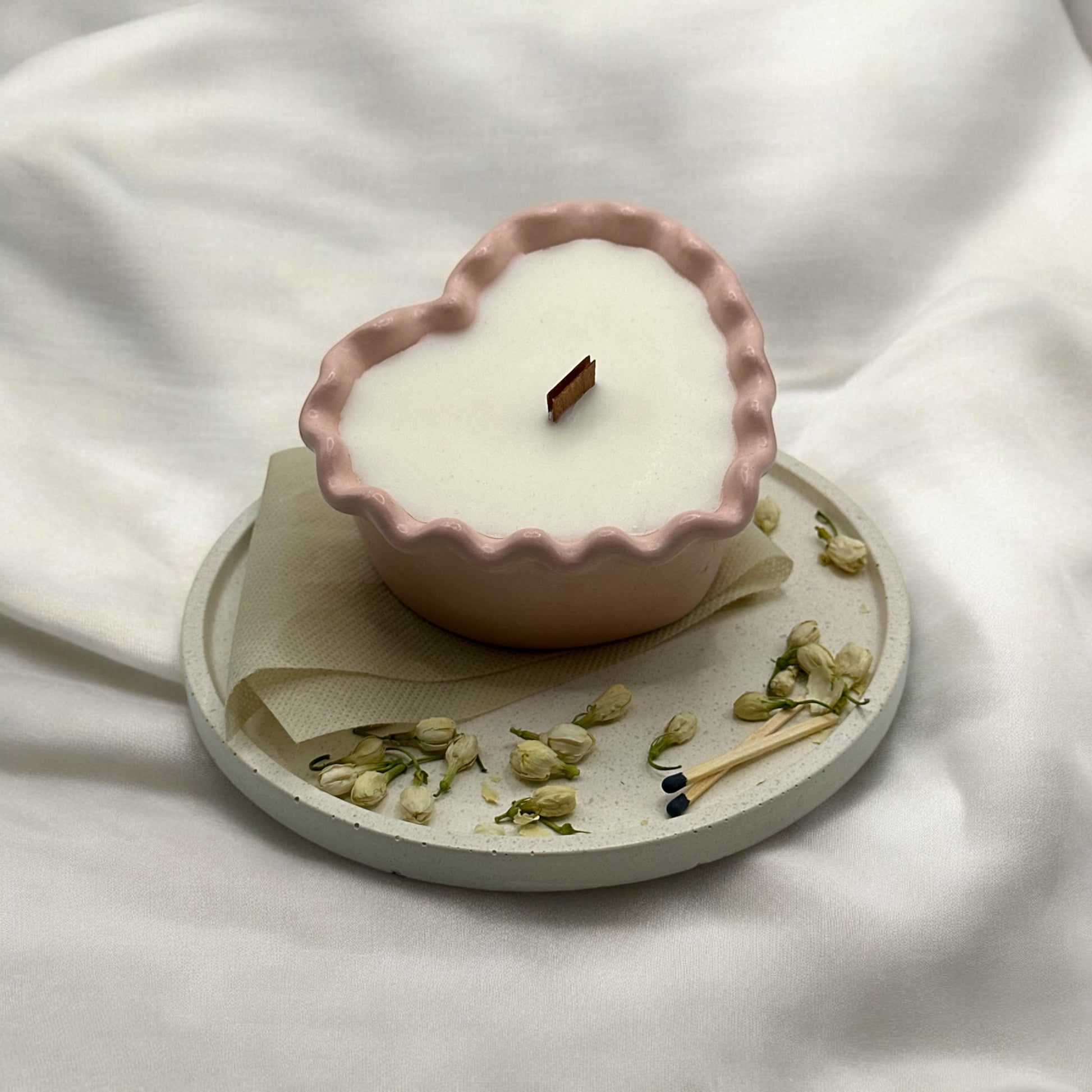 Γλυκό, παιχνιδιάρικο και γεμάτο φρεσκάδα. Το Heart Tart θυμίζει λαχταριστό γλυκό φράουλα, γεμίζοντας τον χώρο με νότες γλυκιάς απόλαυσης και ζωντάνιας. Το χειροποίητο δοχείο σε σχήμα τάρτας το κάνει μοναδικό και ιδανικό για να χαρίσεις ένα δώρο-έκπληξη ή να απολαύσεις στιγμές χαλάρωσης.