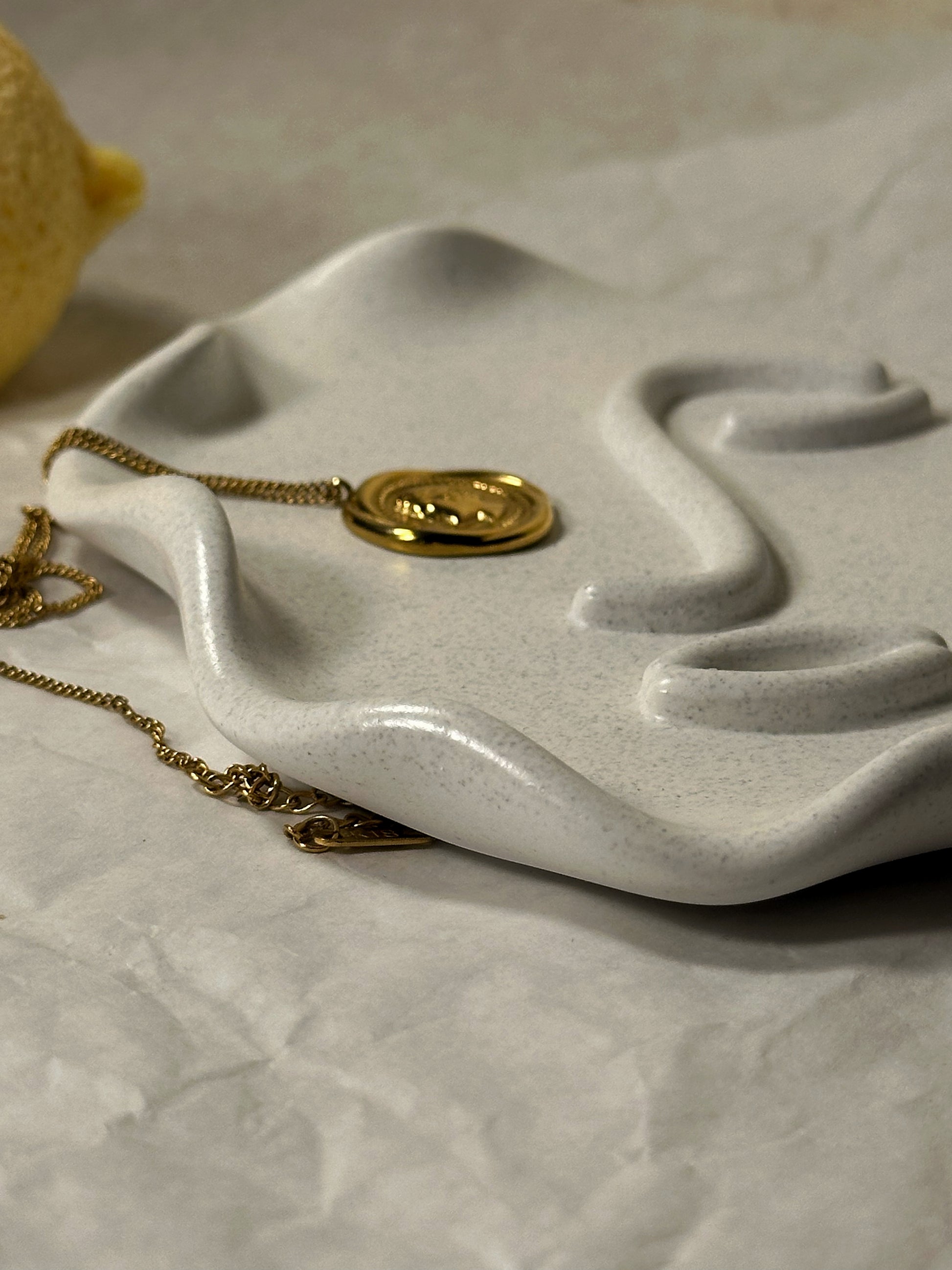 Το Muse είναι ένα καλλιτεχνικό πιάτο από stoneware πορσελάνη, με ανάγλυφη αφαιρετική απεικόνιση προσώπου. Με μαλακές, κυματιστές άκρες και λεπτομέρειες που θυμίζουν μοντέρνα γλυπτική, προσδίδει έναν ιδιαίτερο χαρακτήρα σε κάθε χώρο. Ιδανικό για κοσμήματα, ρεσώ, αξεσουάρ ή απλά ως διακοσμητικό στο τραπεζάκι ή στο κομοδίνο.