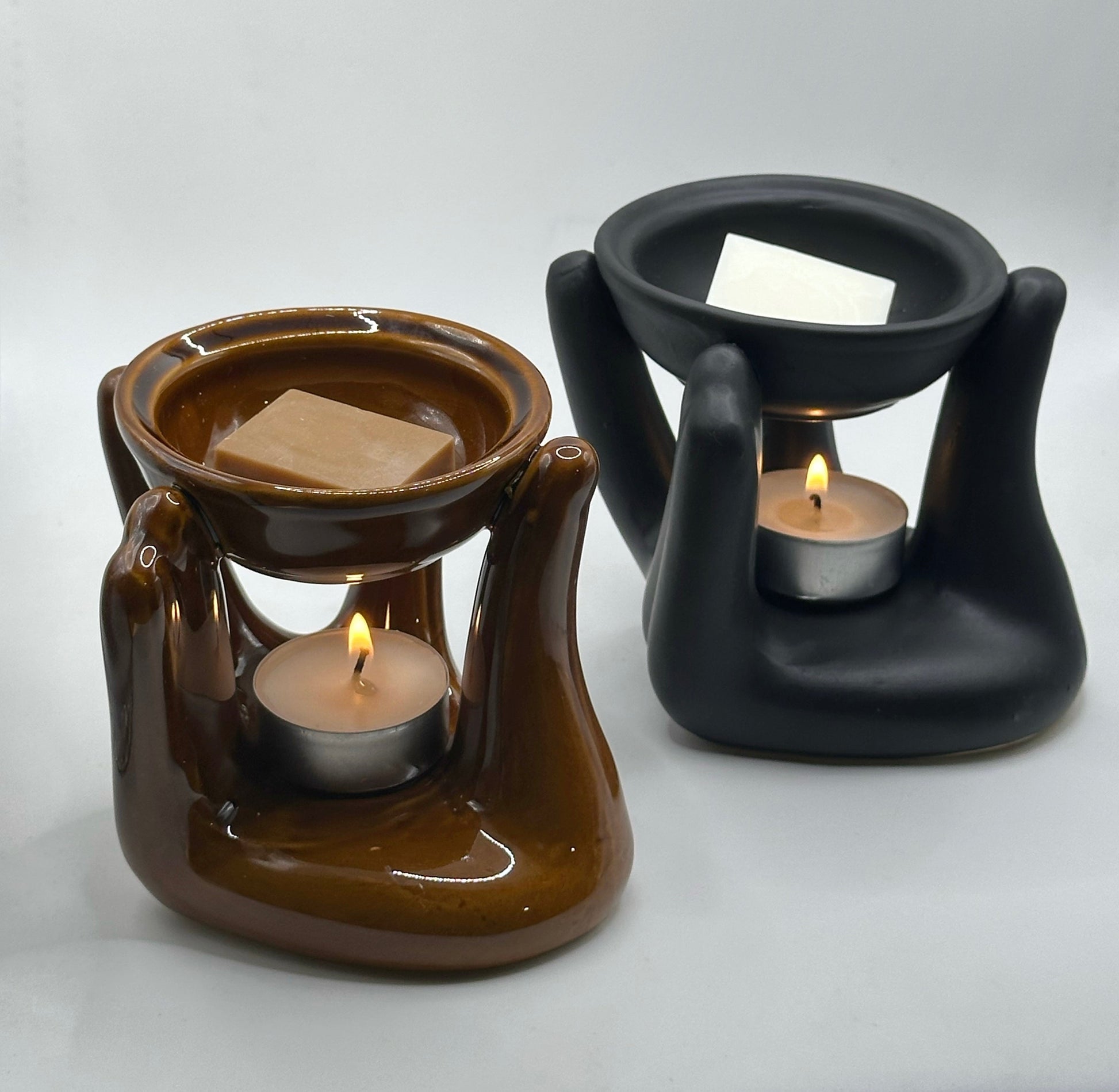 Κεραμικός καυστήρας σε σκούρο καφέ χρώμα και σχήμα χεριού που προσφέρει πρωτότυπη αισθητική και cozy ατμόσφαιρα. Απλώς τοποθέτησε ένα wax melt στο επάνω μέρος ή πρόσθεσε λίγο νερό με σταγόνες από το αγαπημένο σου αρωματικό έλαιο, άναψε το ρεσώ και άφησε το φως και το άρωμα να γεμίσουν το χώρο.